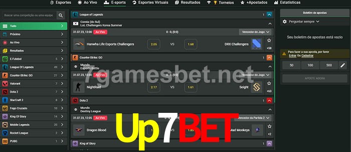 O Up7Bet oferece uma grande seleção de opções de apostas em e-sports com probabilidades competitivas
